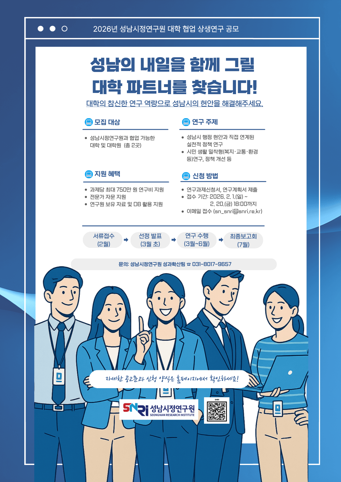 가. 사 업 명 : 2026년 성남시정연구원 대학 협업 상생연구 지원사업