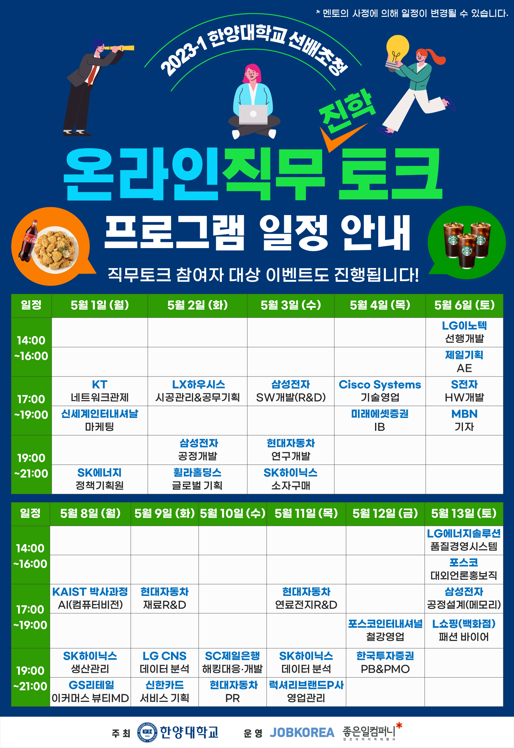 붙임 1. 2023-1 한양대학교 선배초청 온라인 직무토크 홍보포스터 및 일정표 각1부.
