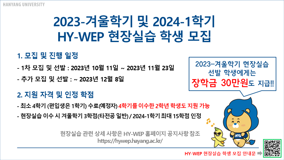 [공지] 2023-겨울학기 및 2024-1학기(연계) 현장실습 참여학생 모집