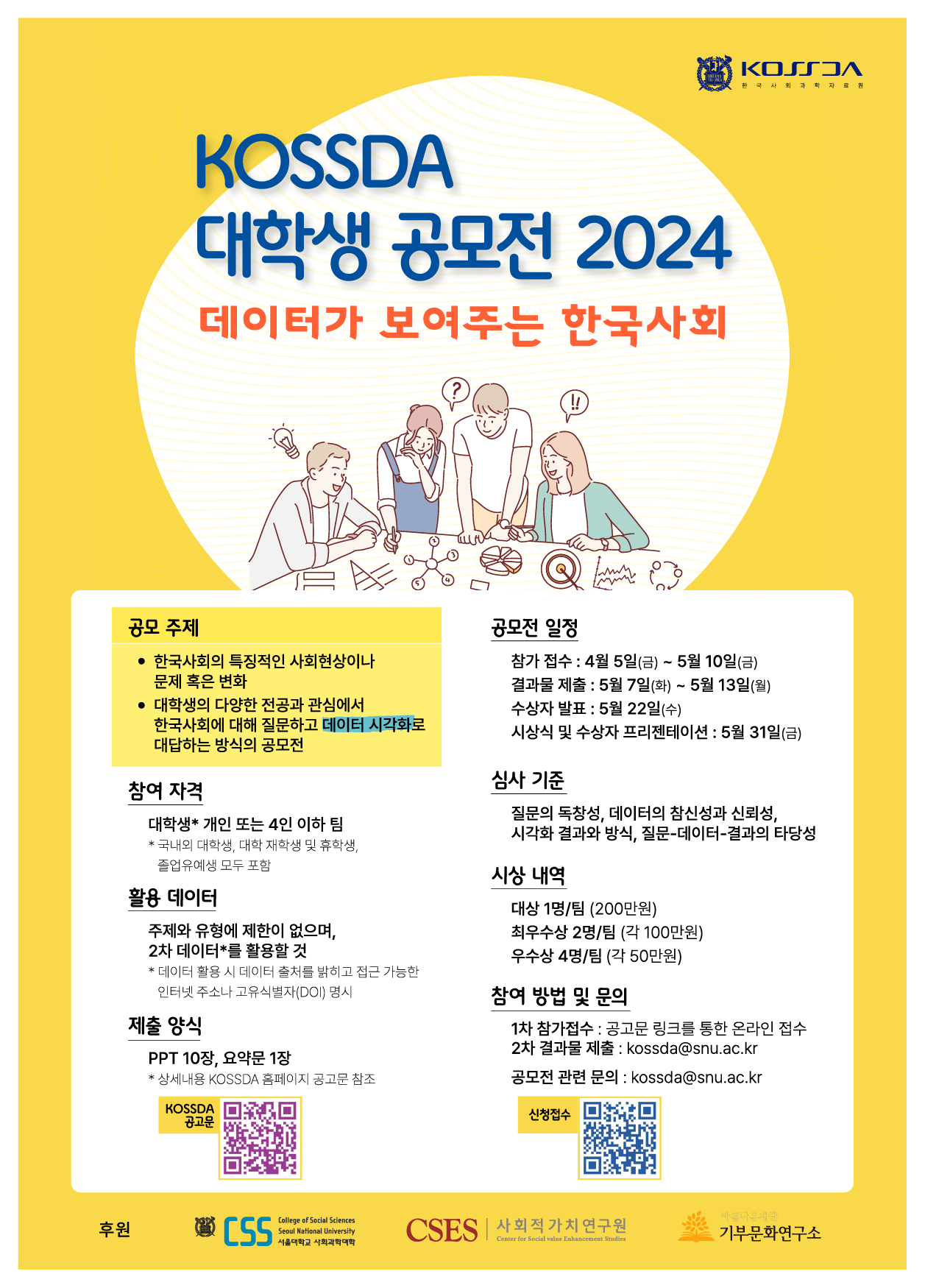 ※ 붙임. KOSSDA 대학생 공모전 공고문 1부 및 포스터 1장. 끝.