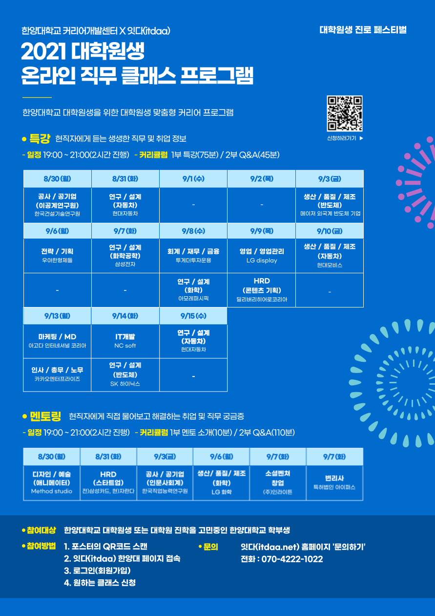가. 행사명: 2021 한양대학교 대학원생을 위한 온라인 직무 클래스 프로그램