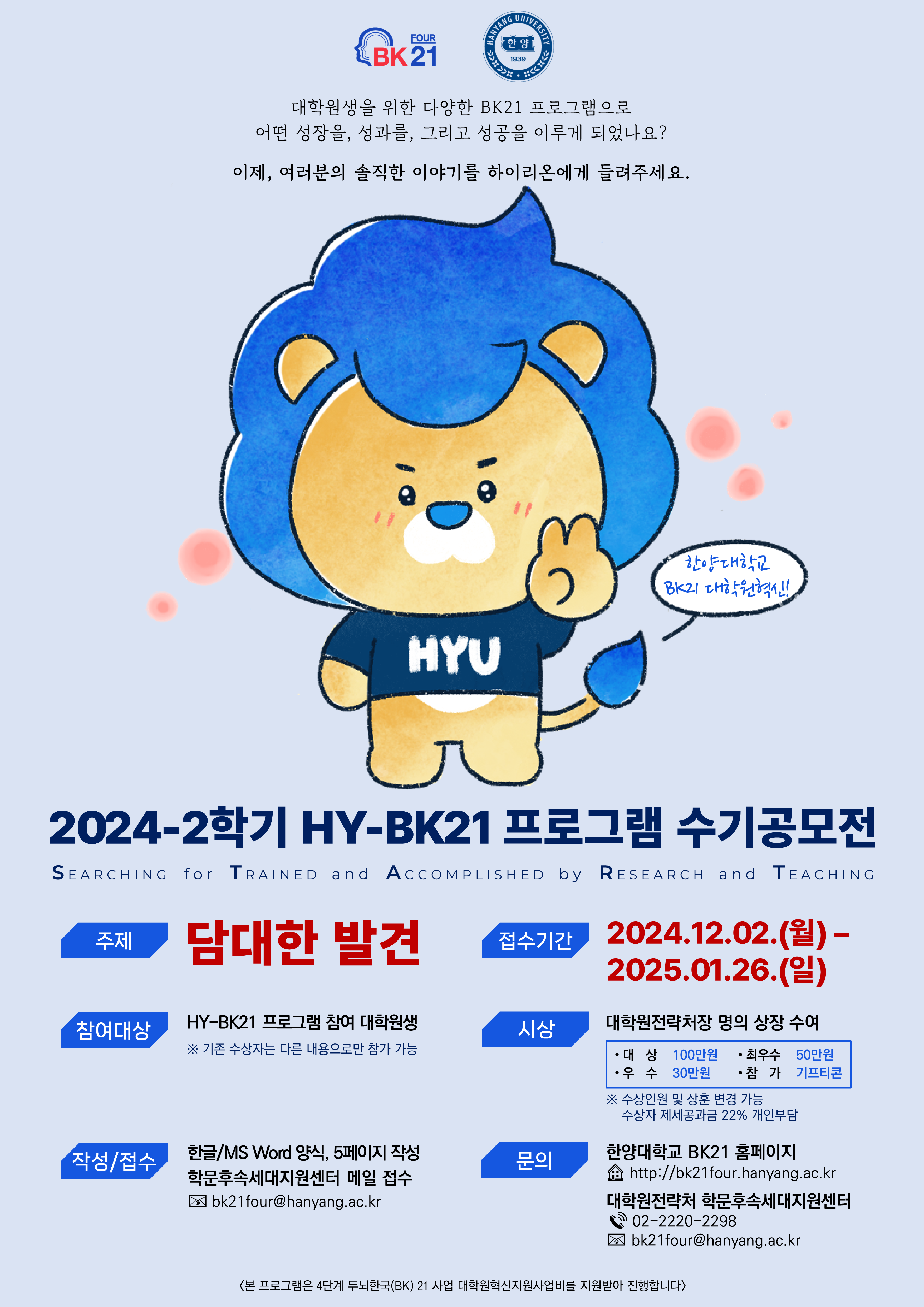 붙임 4. 2024-2학기 HY-BK21 프로그램 수기 공모전 포스터