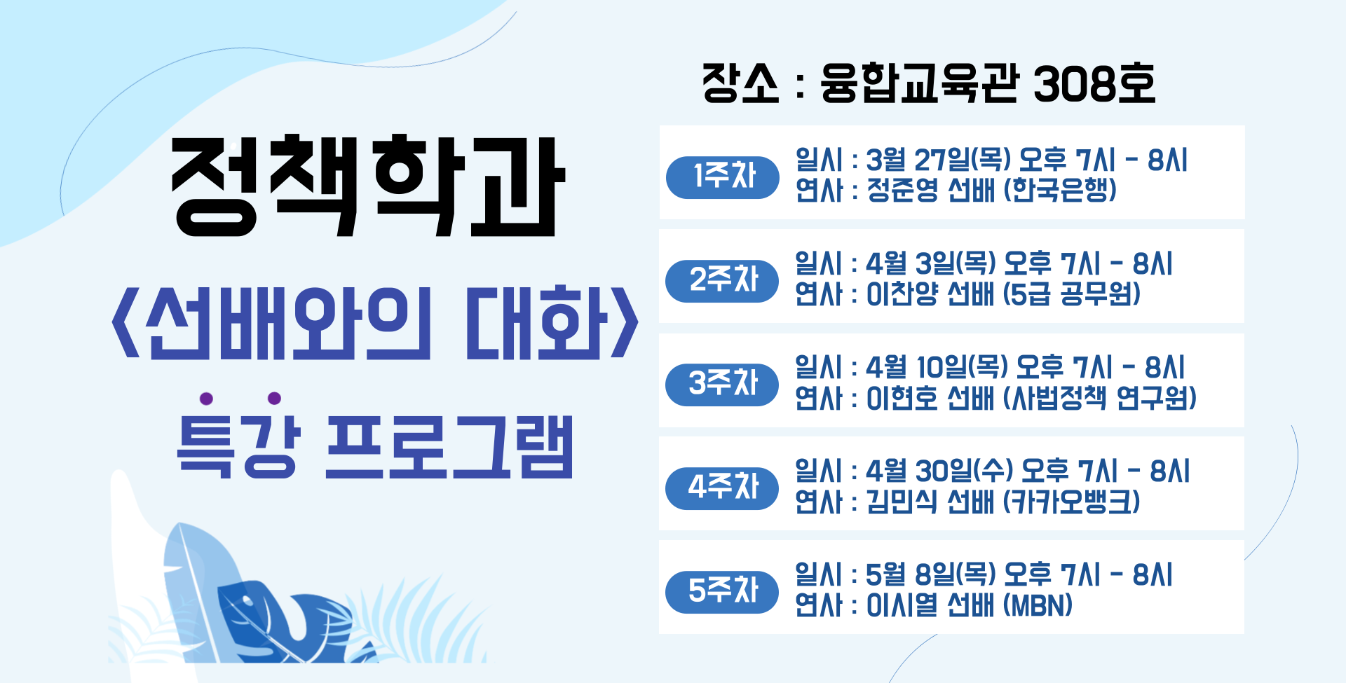 ★★★정책학과 <선배와의 대화> 특강 일정 안내★★★