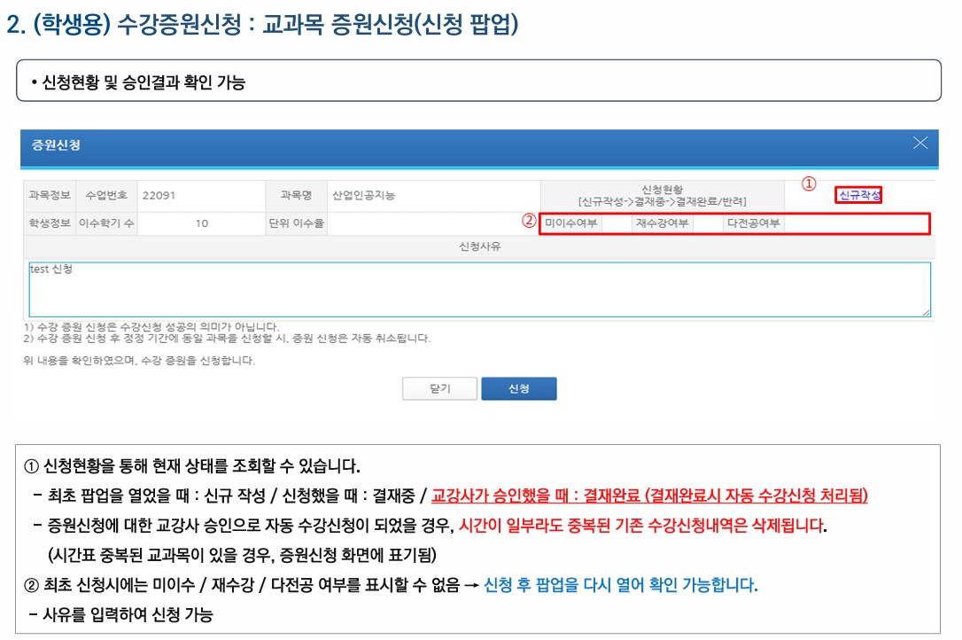 25-2학기부터 시행되는 수강 증원 신청 방법 안내드립니다.