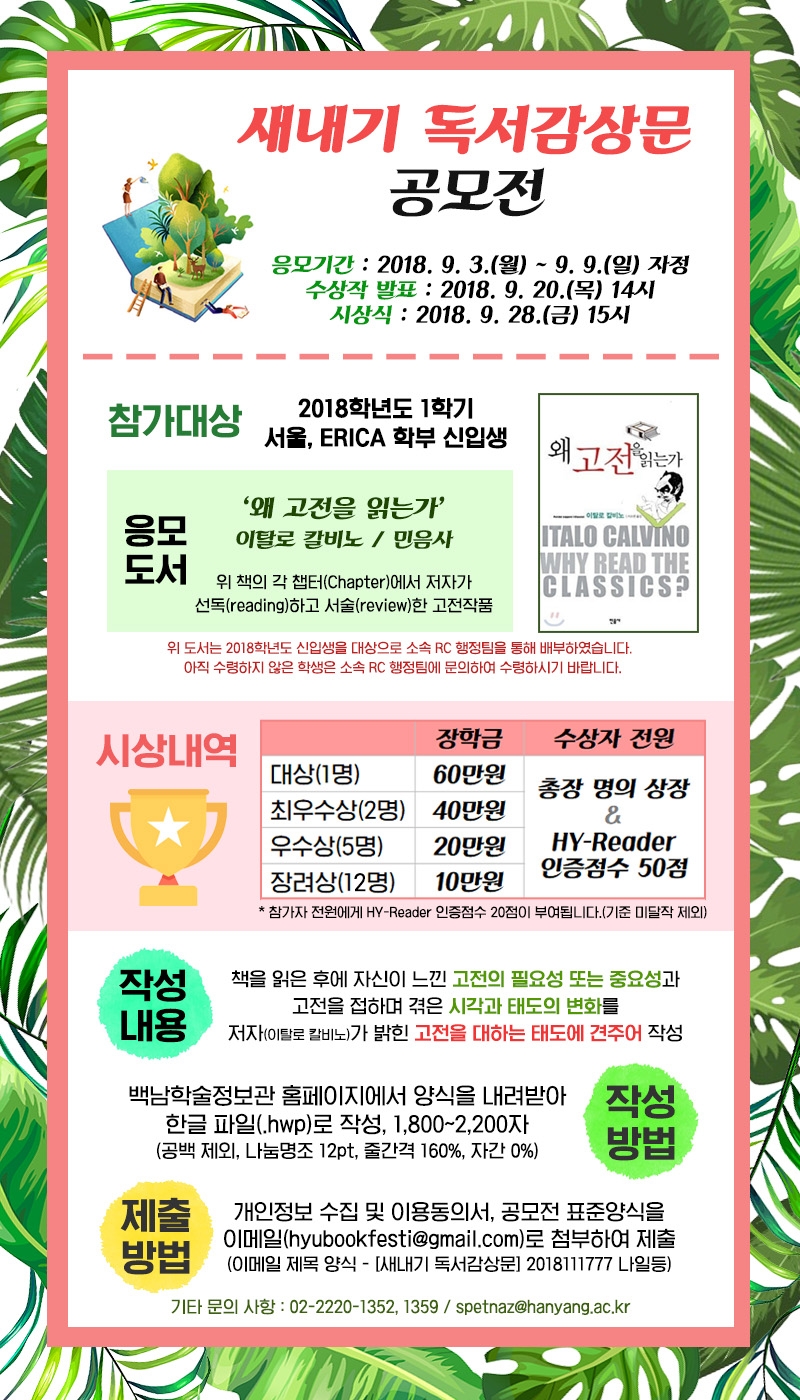 ※ 참가자 전원에게 HY-Reader 인증점수 20점 부여(기준 미달작 제외)