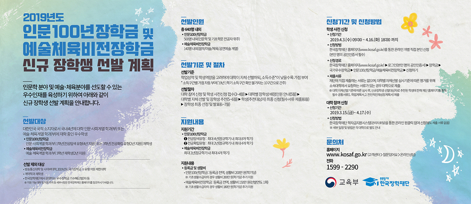 2019년도 인문100년장학금 신규 장학생 선발 계획 안내