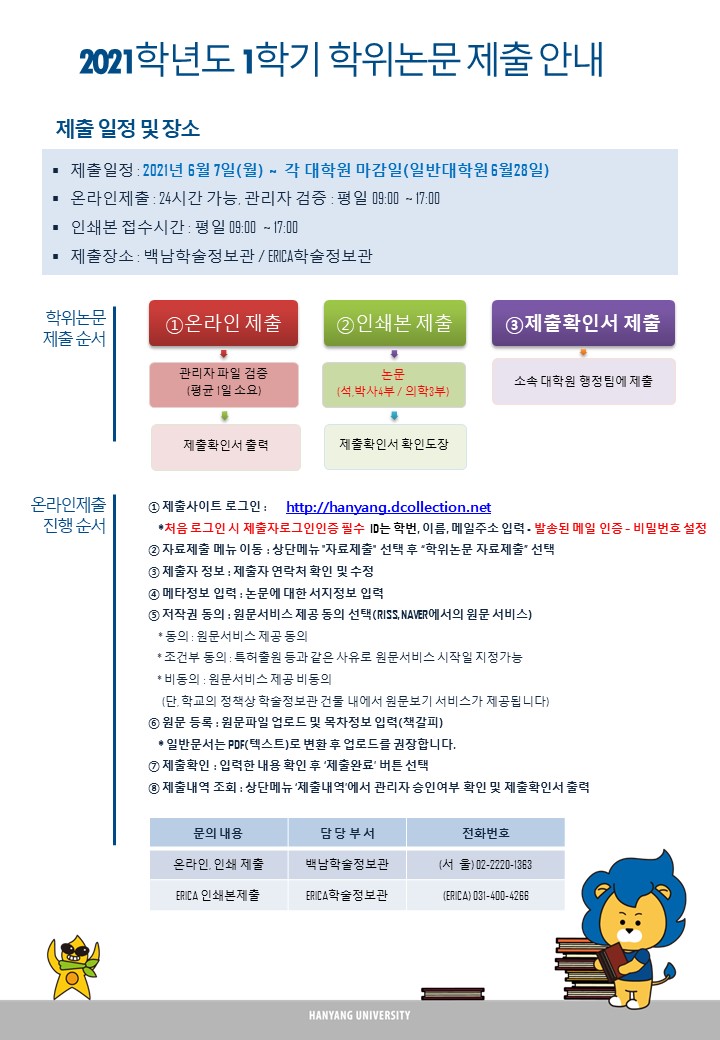 나. ERICA 인쇄본 제출 : ERICA학술정보관 학술정보팀(031-400-4266)