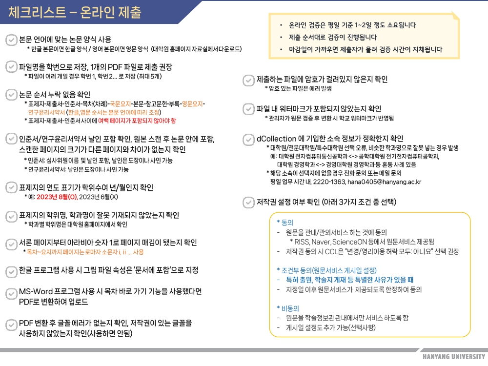 나. ERICA 인쇄본 제출: ERICA학술정보관 학술정보팀 (031-400-4266)