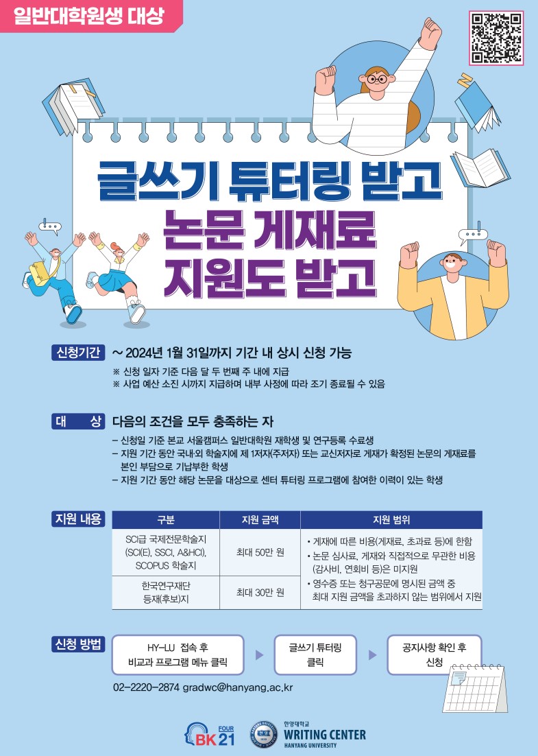 글쓰기 튜터링 프로그램과 논문 작성법 워크숍 프로그램을 진행하고 있습니다.