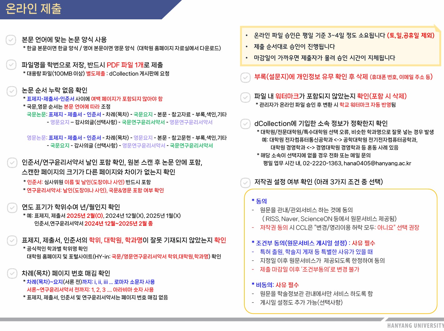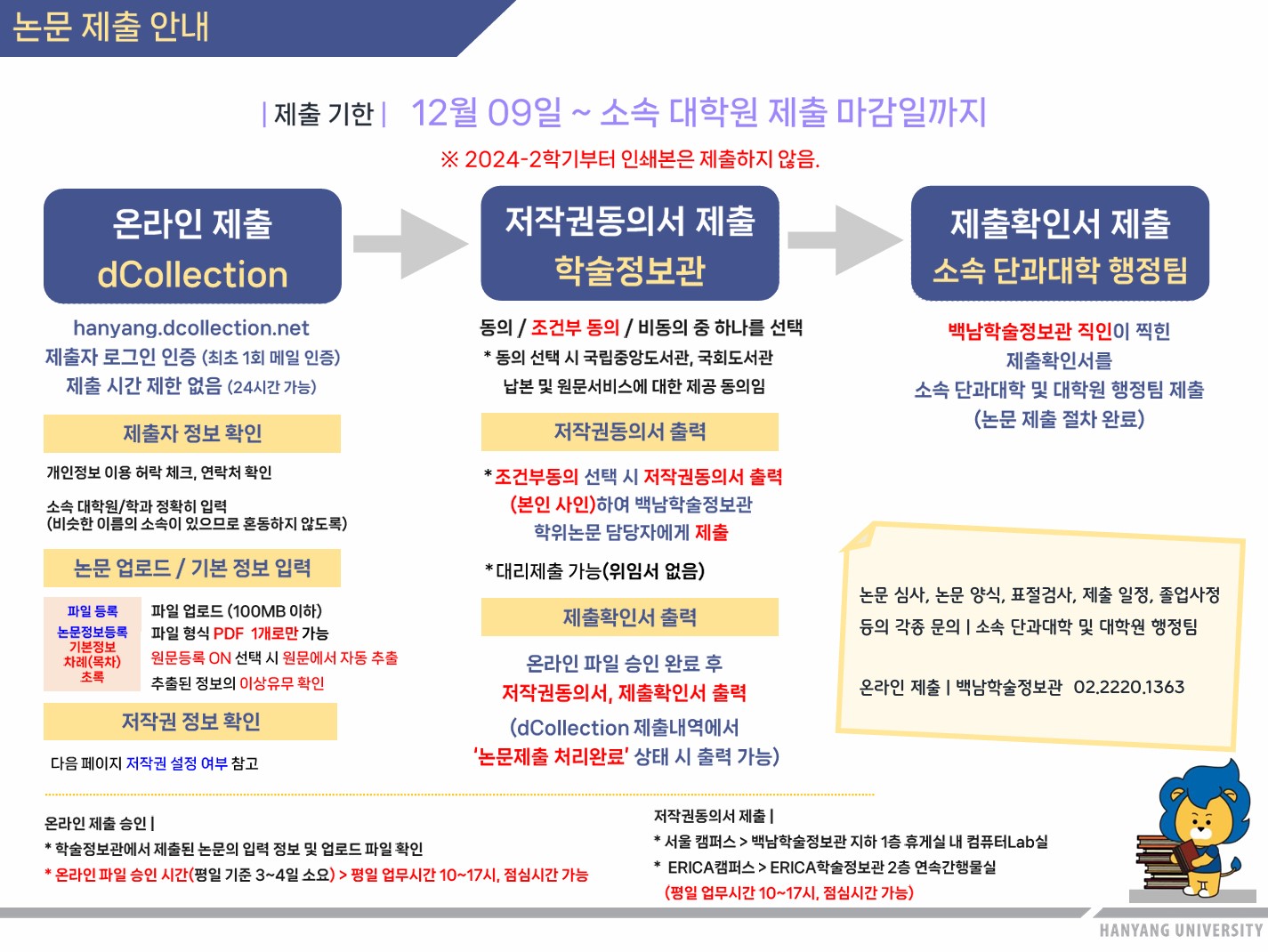 학술정보관에서는 2024학년도 2학기 학위논문을 아래와 같이 접수할 예정입니다.