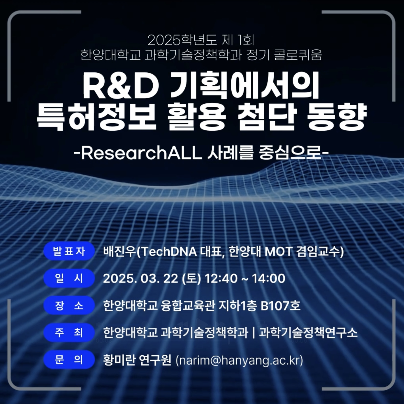 문의: 한양대학교 과학기술정책연구소 황미란 연구원(narim@hanyang.ac.kr)
