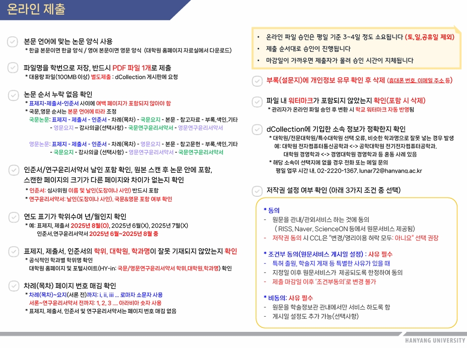학술정보관에서는 2025학년도 1학기 학위논문을 아래와 같이 접수할 예정입니다.